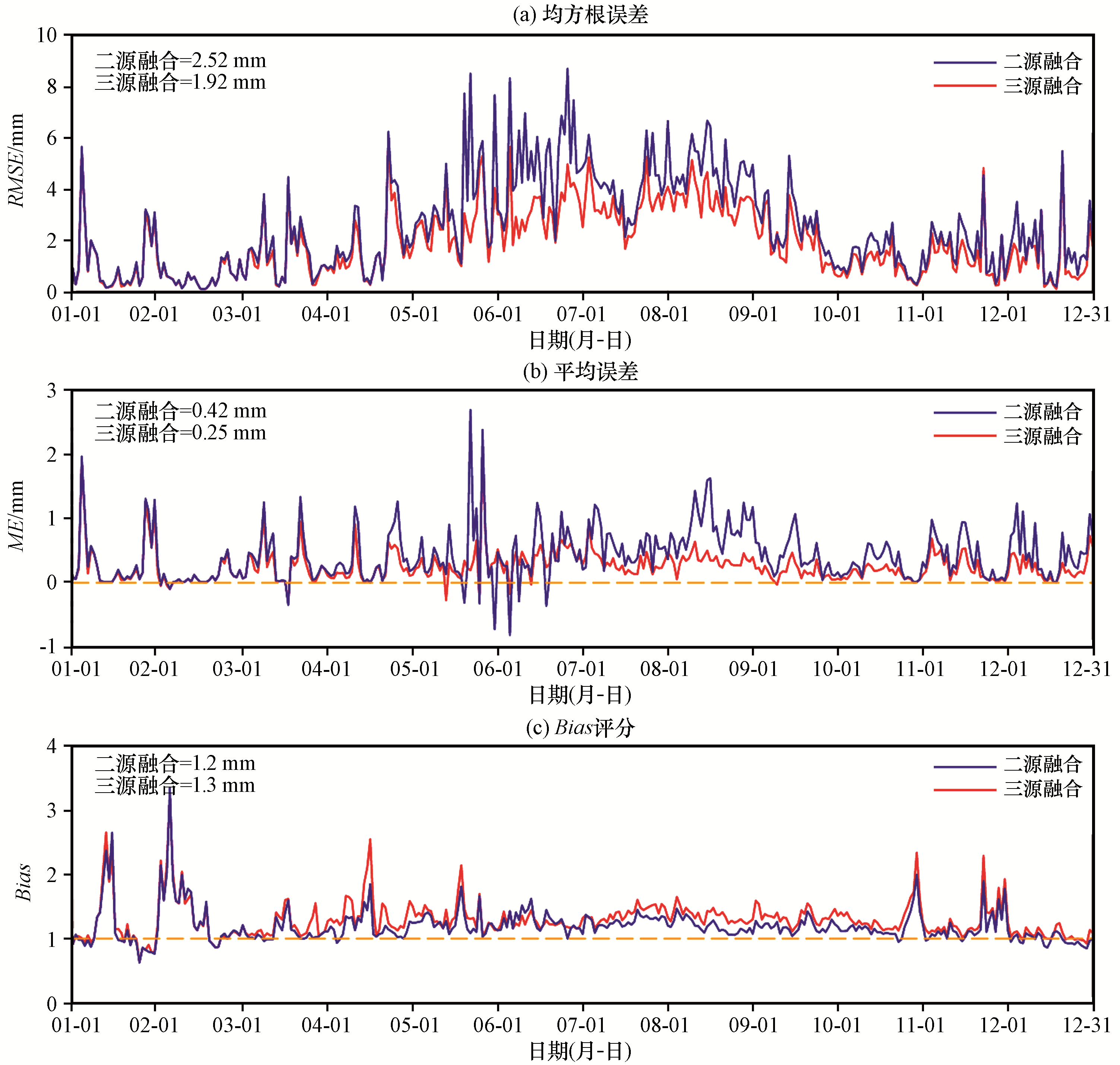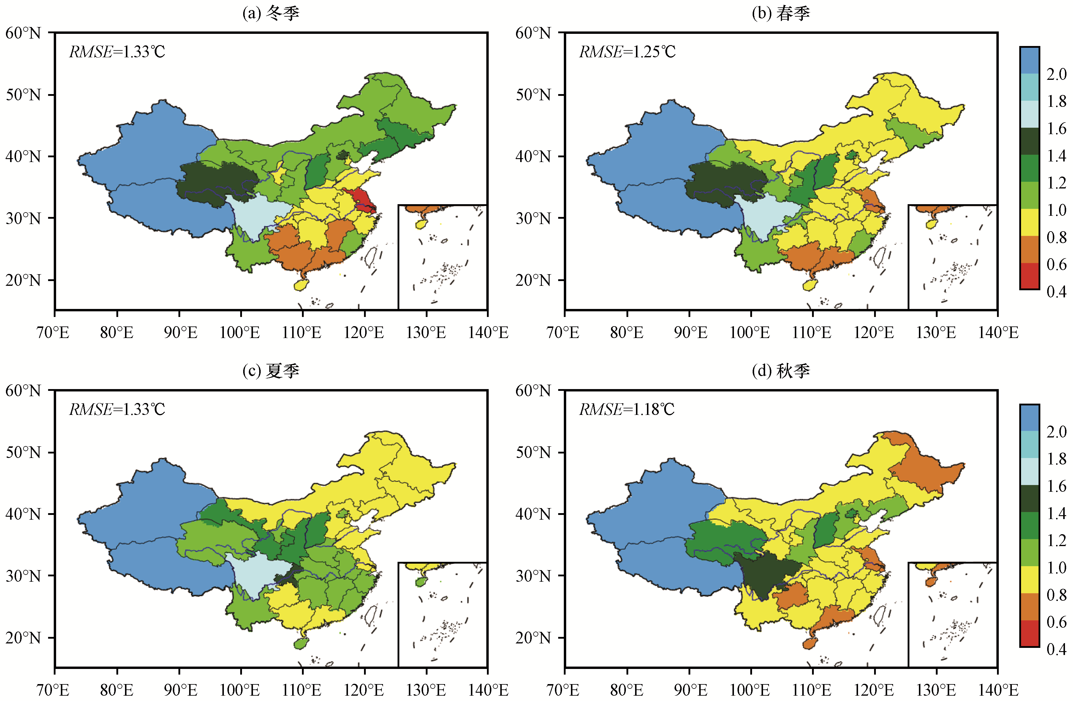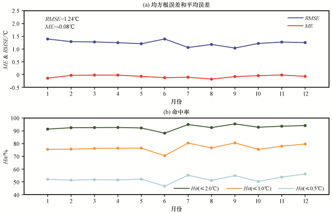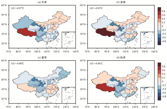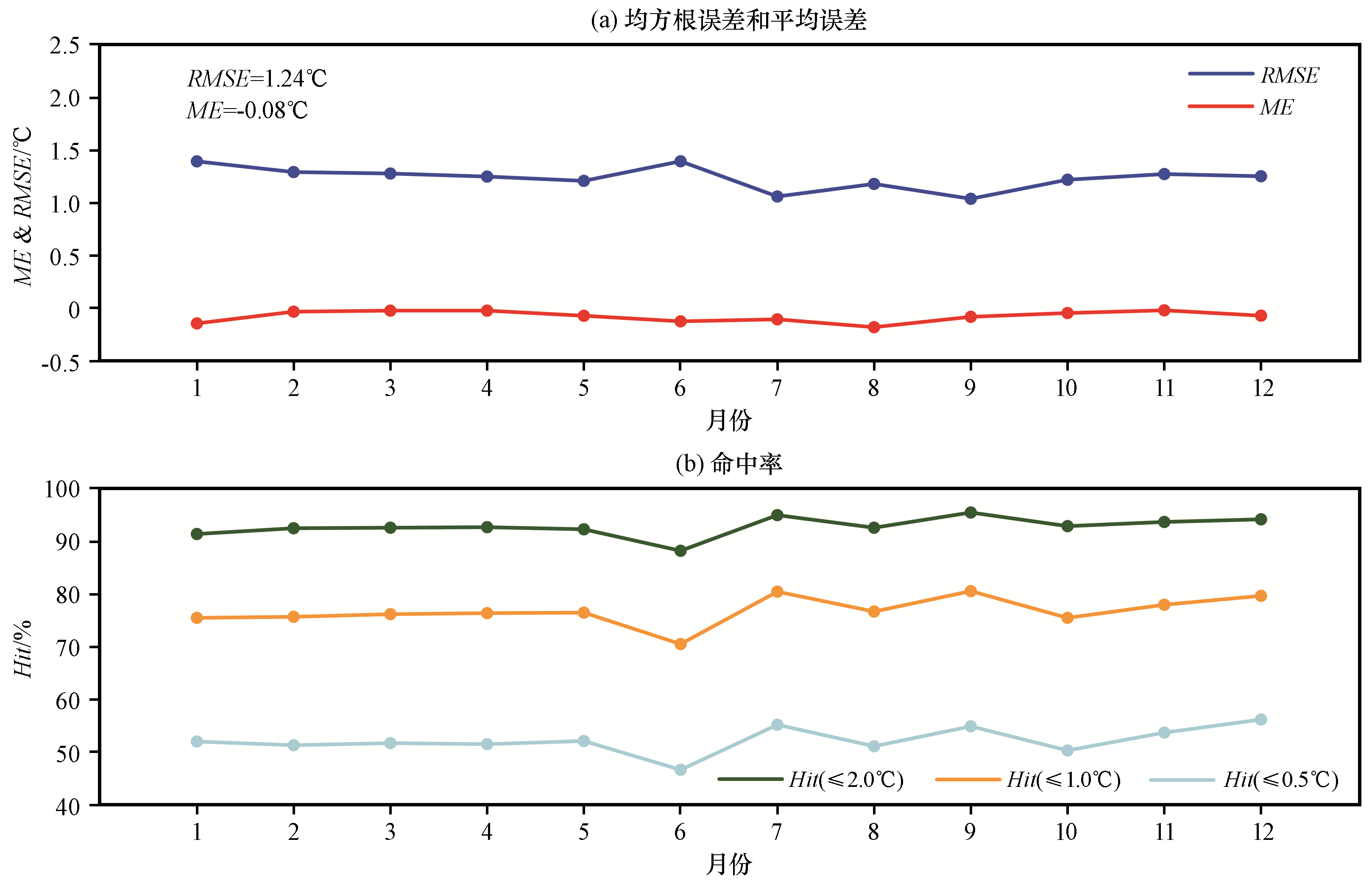 表1 高温天气时2 m温度格点融合产品检验评估Table 1 The RMSE and ME of the gridded 2 m temperature products in hot days |
