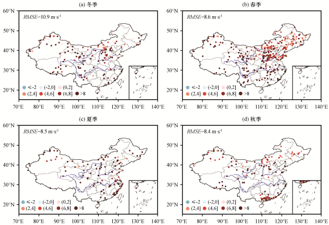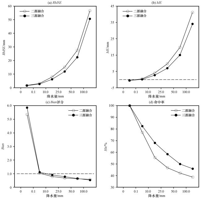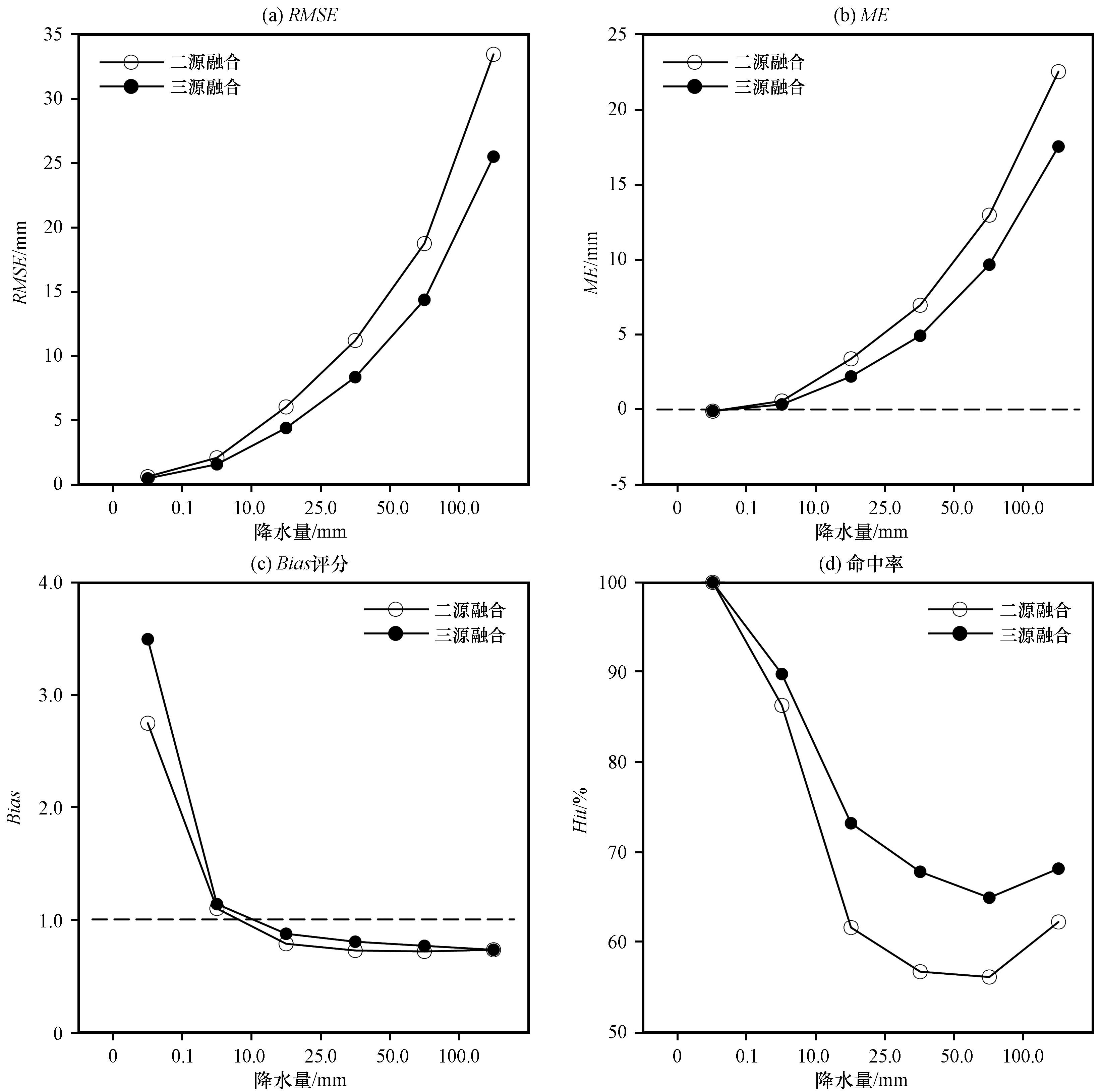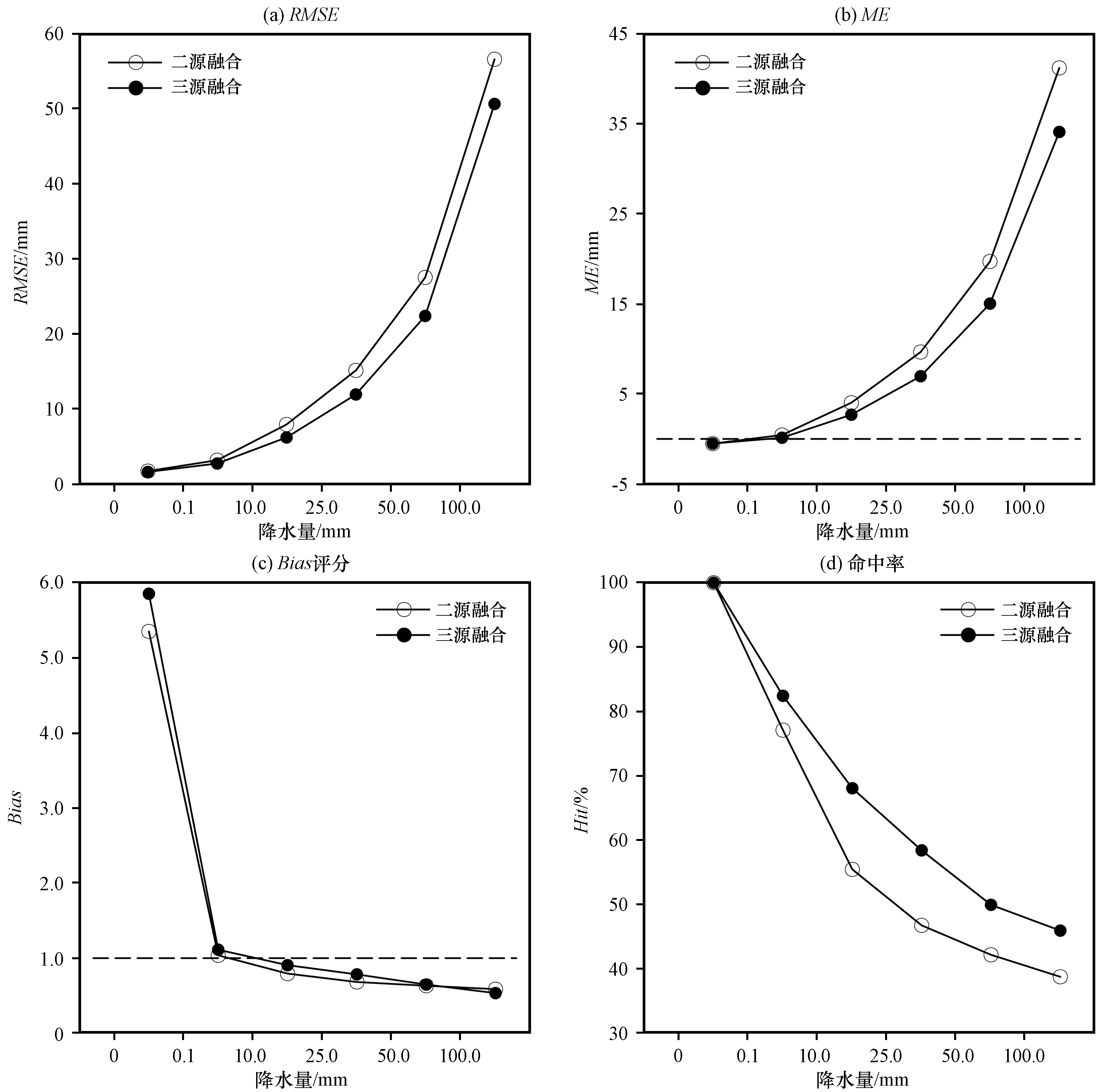 表1 高温天气时2 m温度格点融合产品检验评估Table 1 The RMSE and ME of the gridded 2 m temperature products in hot days |