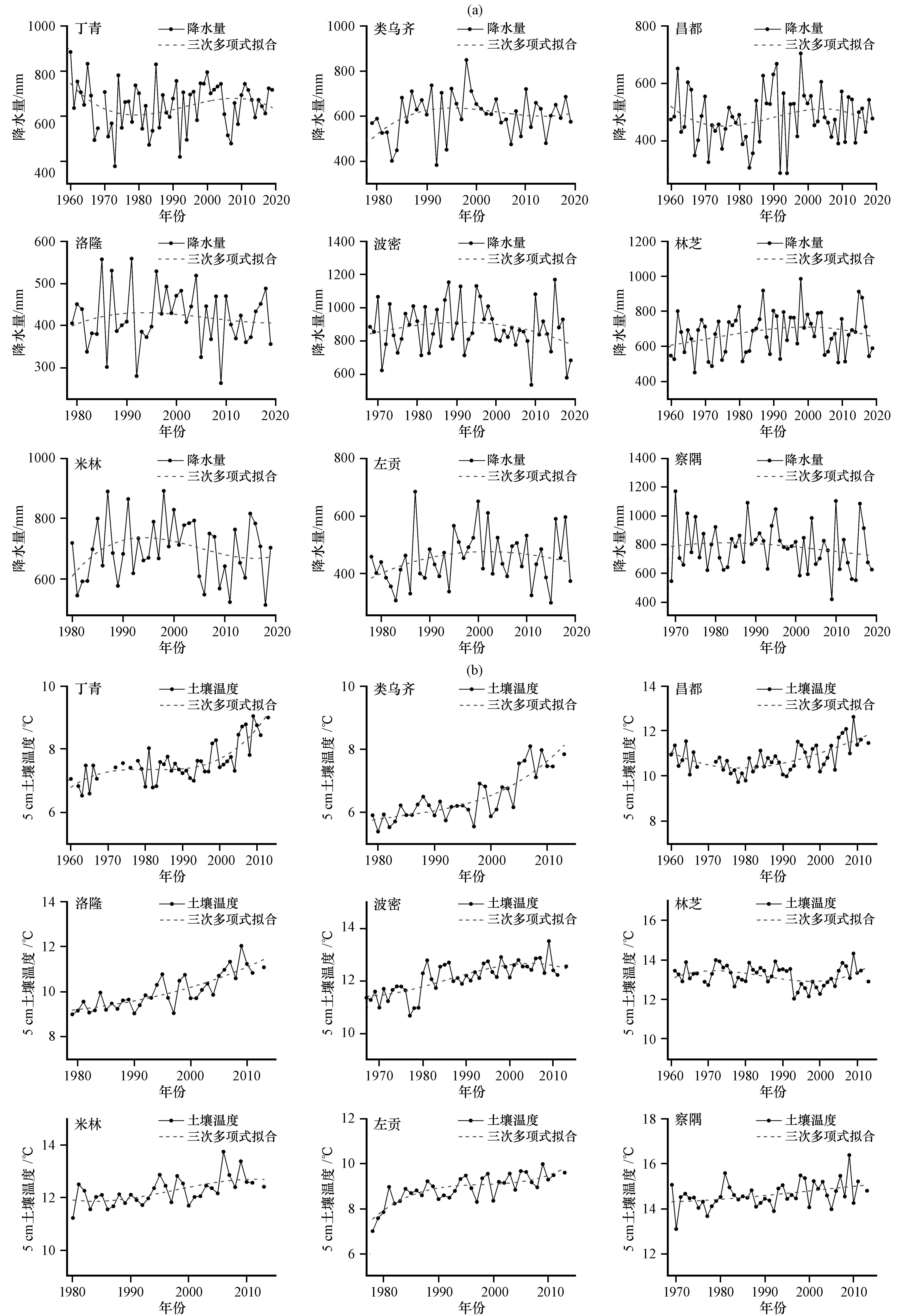 | 降水 | 丁青 | -0.02 | -0.20 | -0.13 | -0.10 | -0.09 | -0.16 | 0.04 |