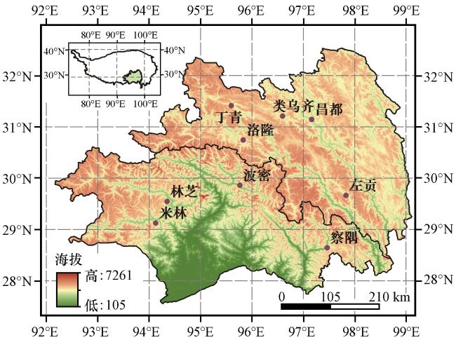 表1 藏东南地区9个气象站基本情况及多年平均气温、 降水、 土壤冻融特征Table 1 The basic circumstances of 9 weather stations of Southeastern Xizang and the characteristics of annual mean temperature, precipitation and soil freeze-thaw |