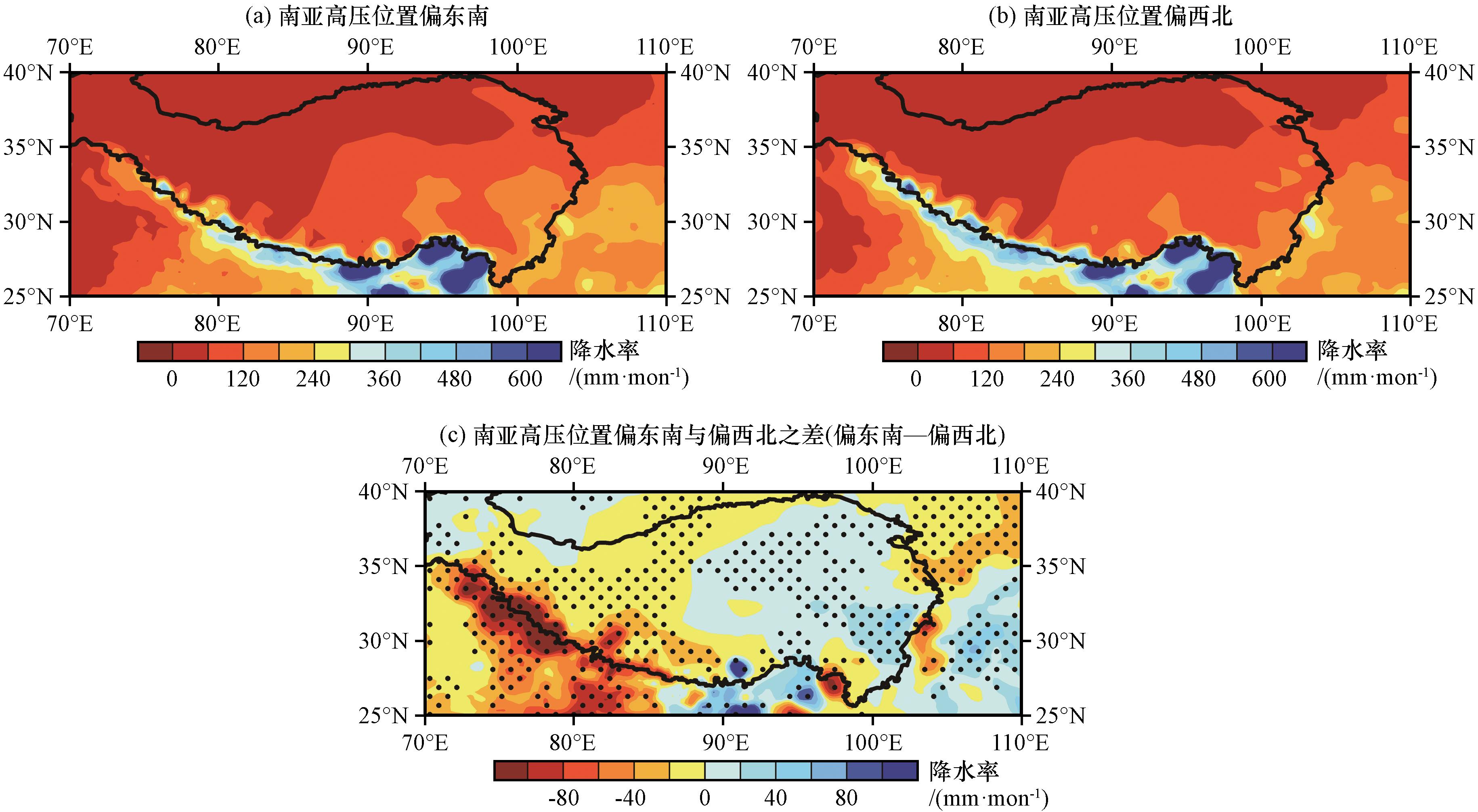 3.1 南亚高压位置变化与高原降水的关系