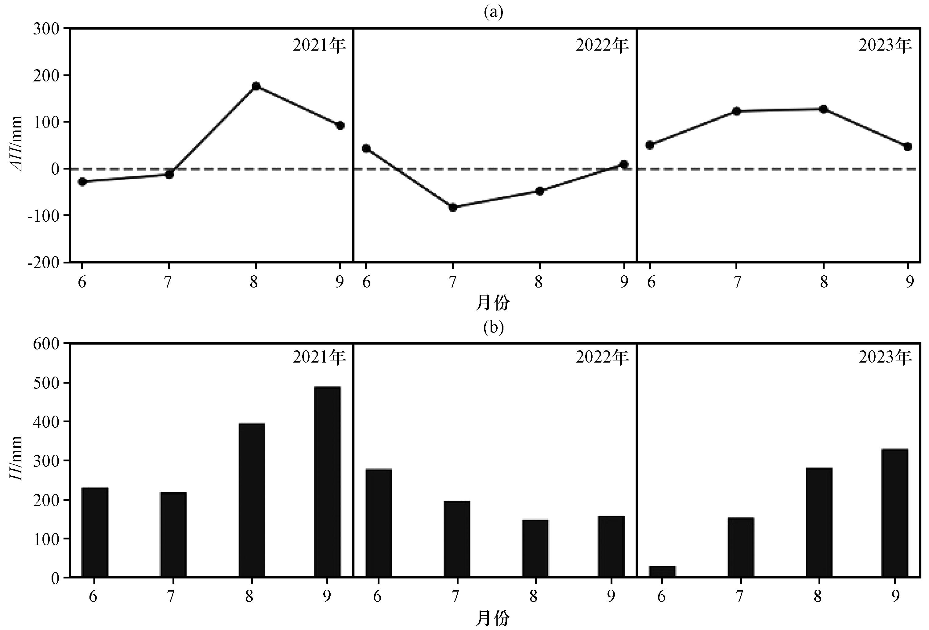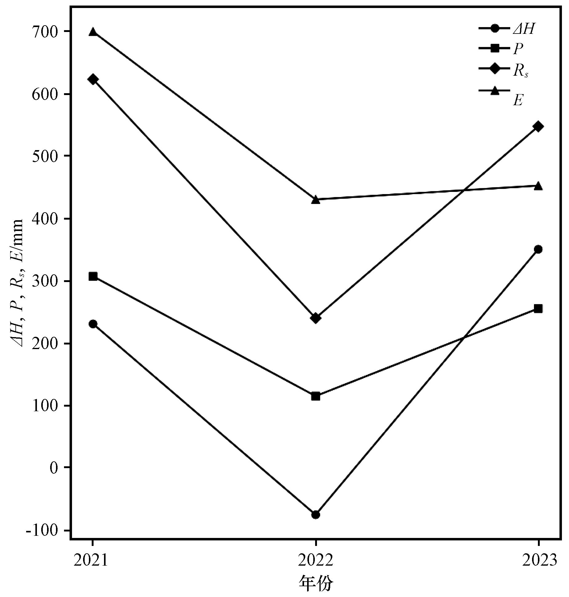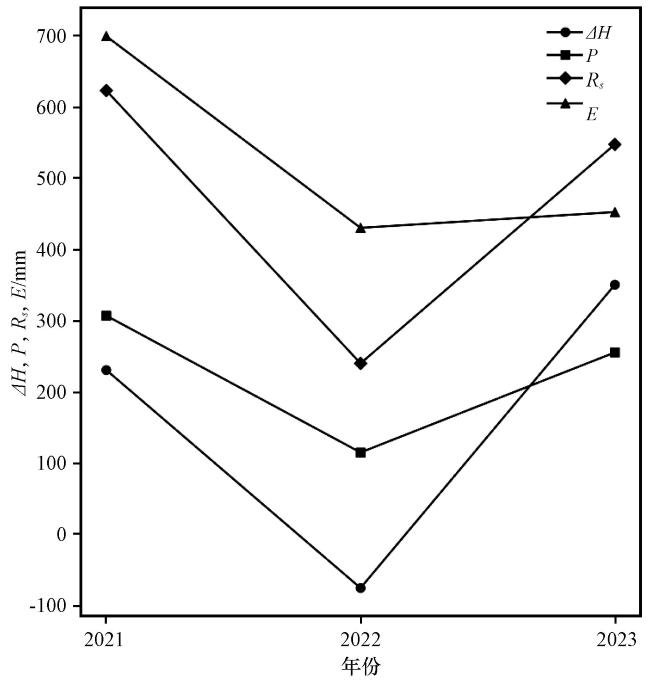| 年份 | ∆H/mm | E/P | 气象要素变化 |