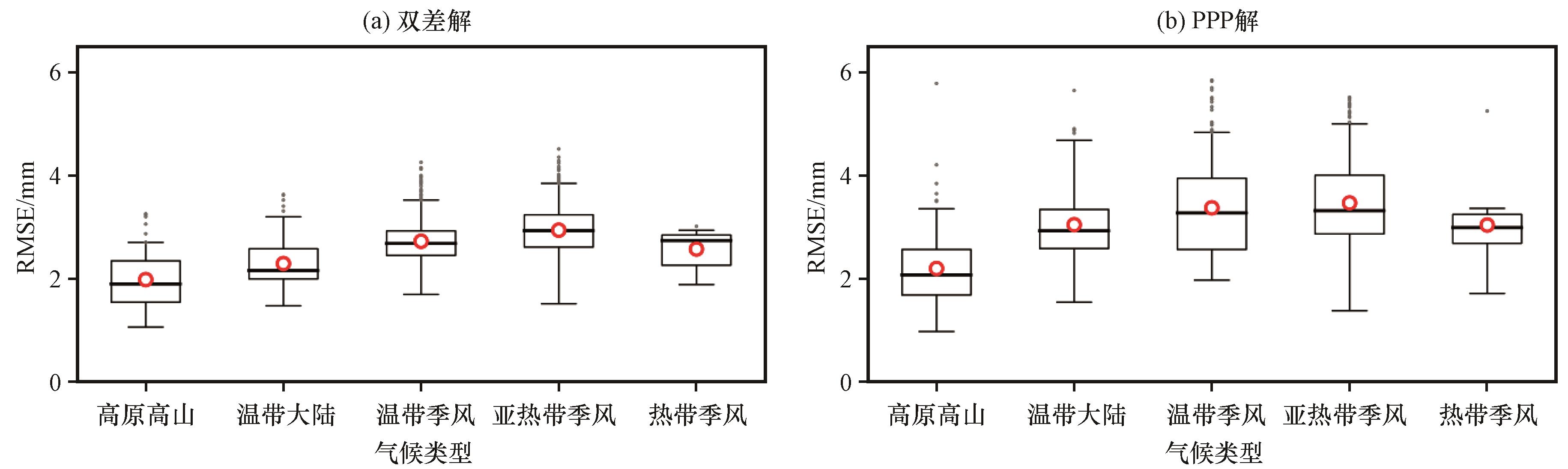 | 高原高山气候 | 双差解 | -2.9 | 1.9 | -0.5 | -0.5 | 1.1 | 3.3 | 2.0 | 0.93 |