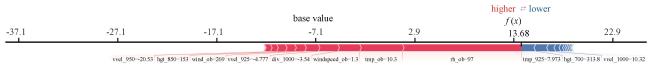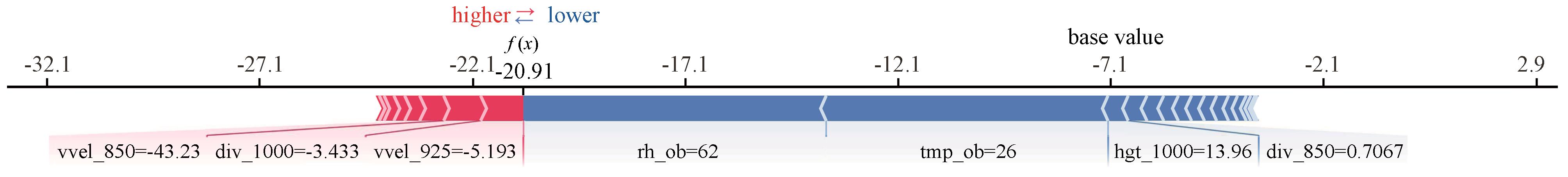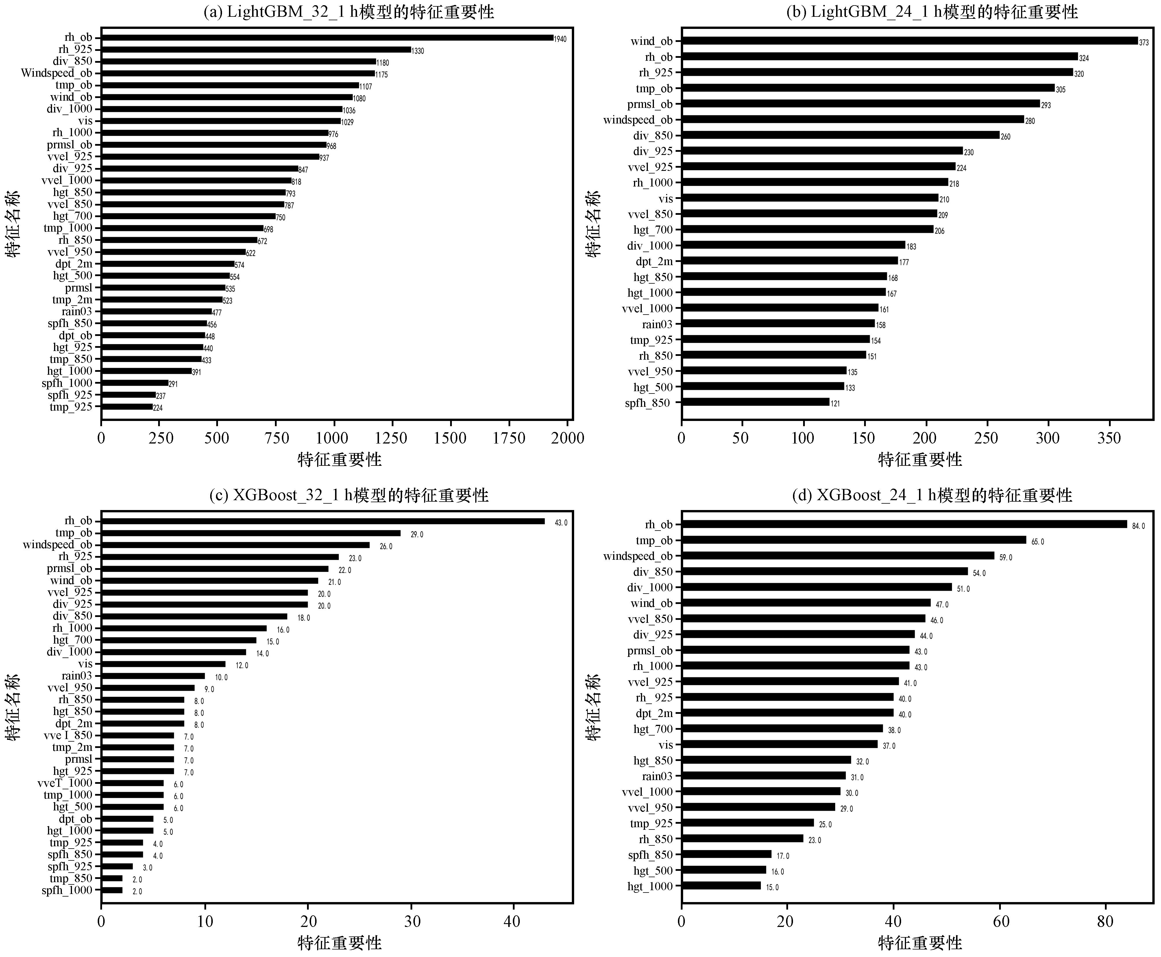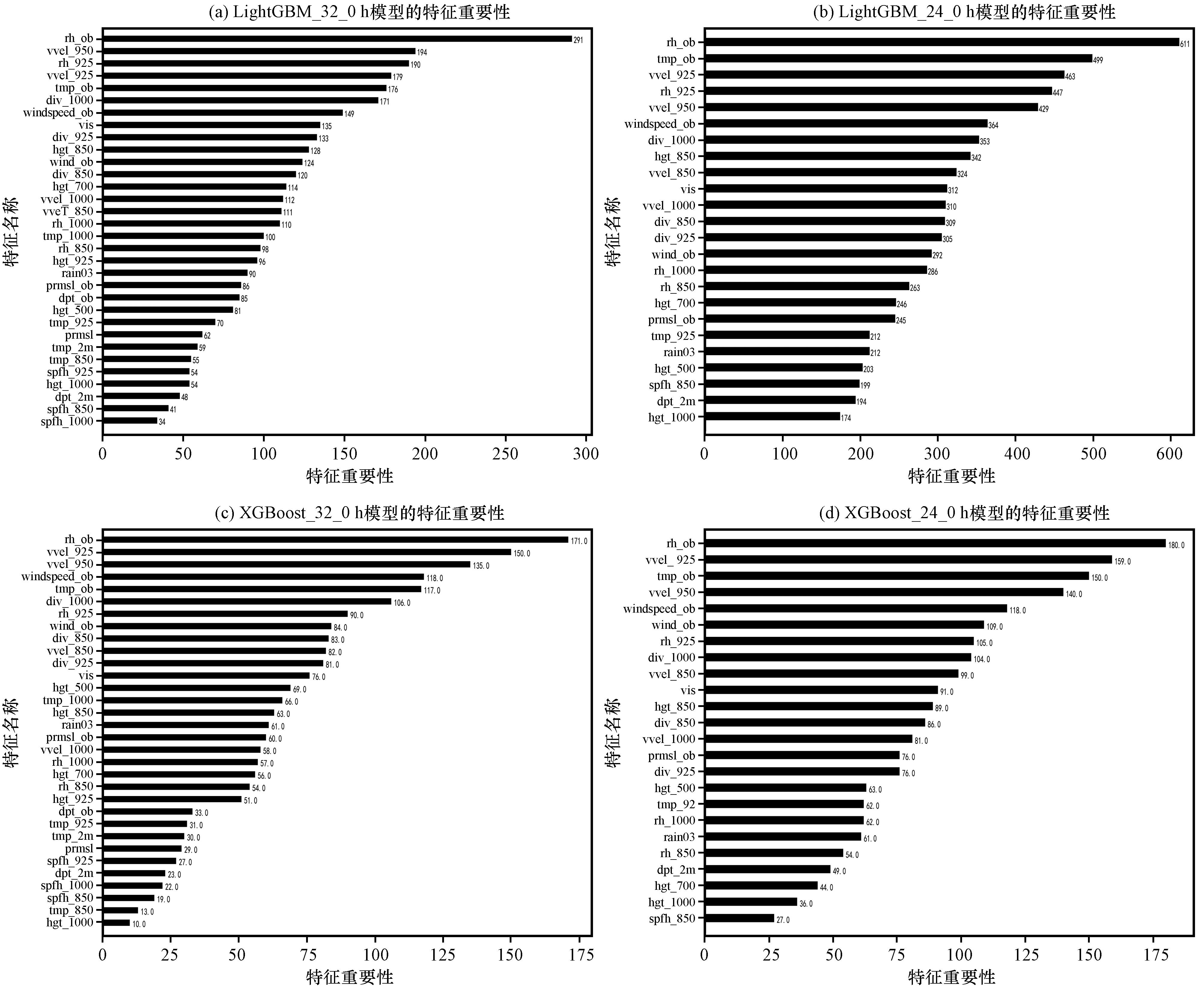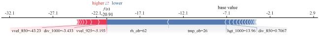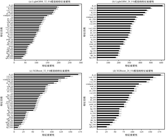 为减少低能见度造成的航班备降和返航,利用地面观测数据和 ECMWF 高空、地面数值预报产品,基于机器学习算法建立景德镇机场当前和未来1 h低能见度短临预报模型。通过对比检验发现XG‐Boost和LightGBM机器学习算法在机场低能见度短临预报中优于SVM机器学习算法,特征筛选对XG‐Boost和LightGBM机器学习算法的性能都有改善;通过SHAP方法解释LightGBM机器学习模型,分析各特征对模型输出的贡献。主要结论如下:(1)LightGBM 和 XGBoost建立的机器学习模型在机场低能见度预报方面表现良好,AUC可达0. 98,对于当前低能见度和未来1 h低能见度预报的F1_score最高可达 0. 92。(2)基于“机器学习特征工程要求特征相互独立”原理对特征进行清洗筛选,有利于提高 XG‐Boost算法模型对未来1 h低能见度的预报准确率,而经过特征筛选的LightGBM模型在预报当前和未来1 h低能见度时比没有特征筛选的LightGBM模型漏报率更低。对当前低能见度的预报,LightGBM_24_0h模型最优,对未来 1 h低能见度的预报,XGBoost_24_1h模型最优,且特征筛选对 XGBoost算法的性能提升更大。(3)分别使用分裂次数和SHAP值分析LightGBM算法模型的特征重要性,表明在不同特征重要性准则下,机场实测相对湿度、气温、风、海平面气压和ECMWF预报的1000 hPa相对湿度、925 hPa垂直速度和散度、850 hPa散度9个特征对机场低能见度的预报更重要,且散度作为机器学习模型的输入特征可以极大提高机器学习模型的性能。(4)基于SHAP值解释特征重要性时,排名前十的特征重要性累计占比80%,说明在以雾为主的景德镇机场低能见度短临预报中LightGBM模型能根据关键预报因子输出预测结果,且在预报未来 1 h低能见度是否持续时,可重点关注 850 hPa散度、1000 hPa相对湿度、机场海平面气压和风向的变化。