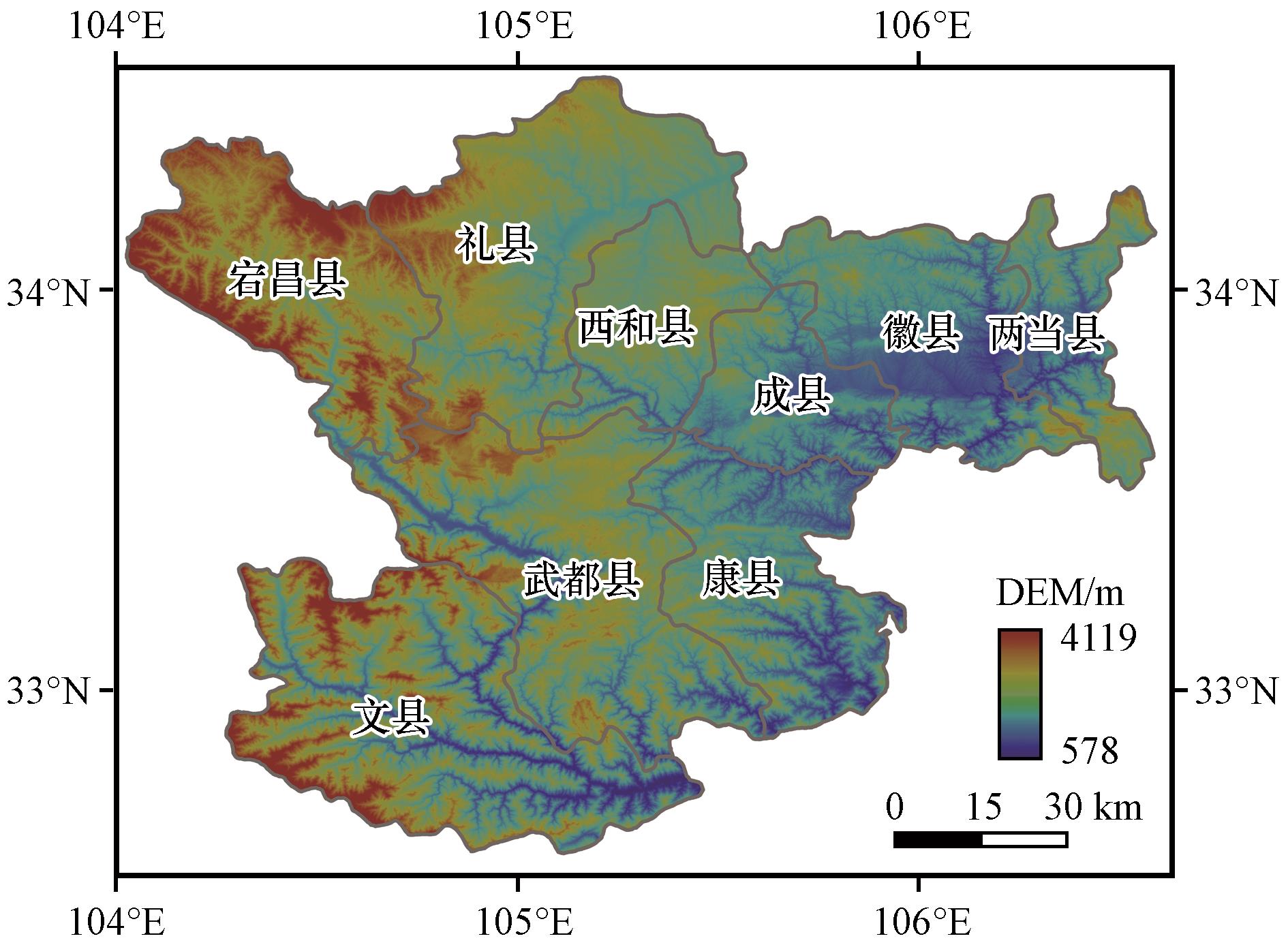 表4 陇南市各县区平均河网密度和坡度Table 4 Average river network density and slope of Longnan City counties |