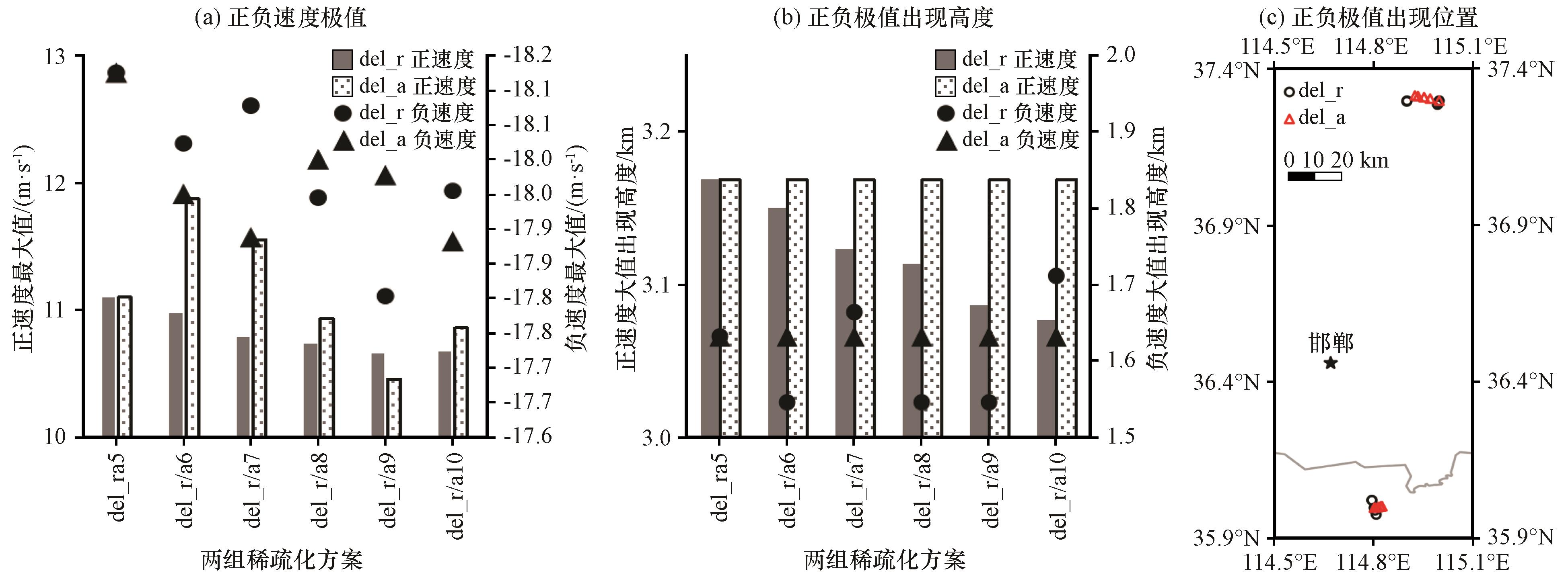 表2 del_r组雷达径向风资料稀疏化前后的数量Table 2 The quantity of radar radial wind data before and after thinning in the del_r experiments |