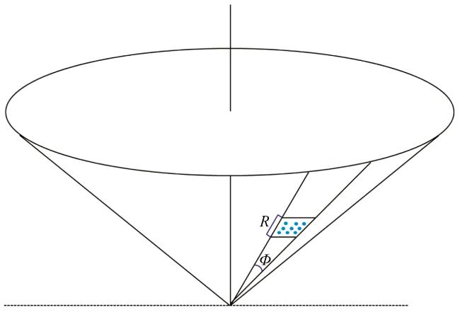 图1 雷达径向风稀疏化示意图 圆点为质量控制后的径向风观测值, R为径向间距、 Ф为方位角间隔, 均称为稀疏化单元格分辨率, 文中也称为SO的分辨率Fig.1 Schematic illustration of radial wind thinning.The dots represent radial wind observations which have been subjected to quality control.R is the range bin spacing, Φ is the azimuthal averaging, Both are referred to as sparse cell resolution, also known as SO grid resolution in the paper |