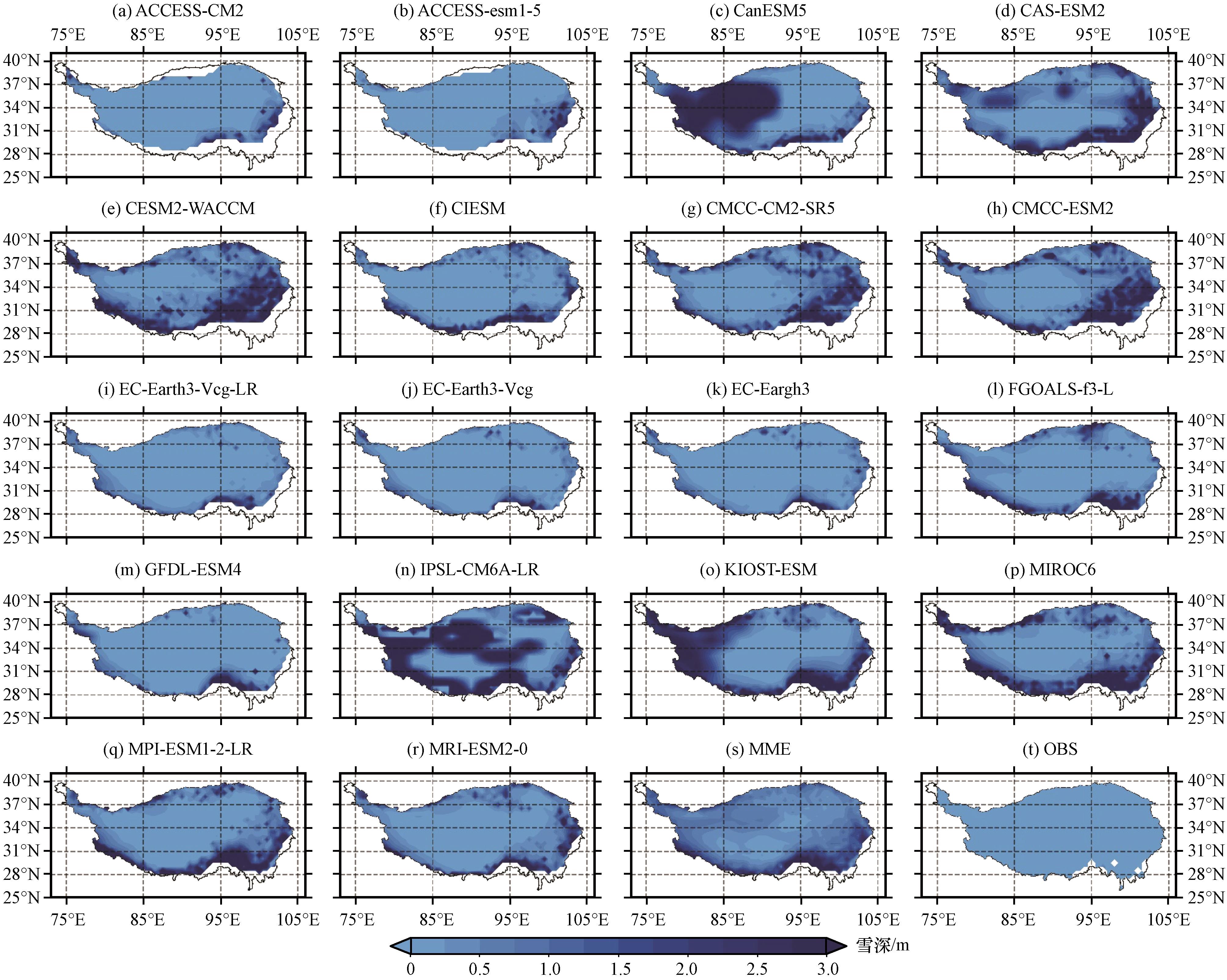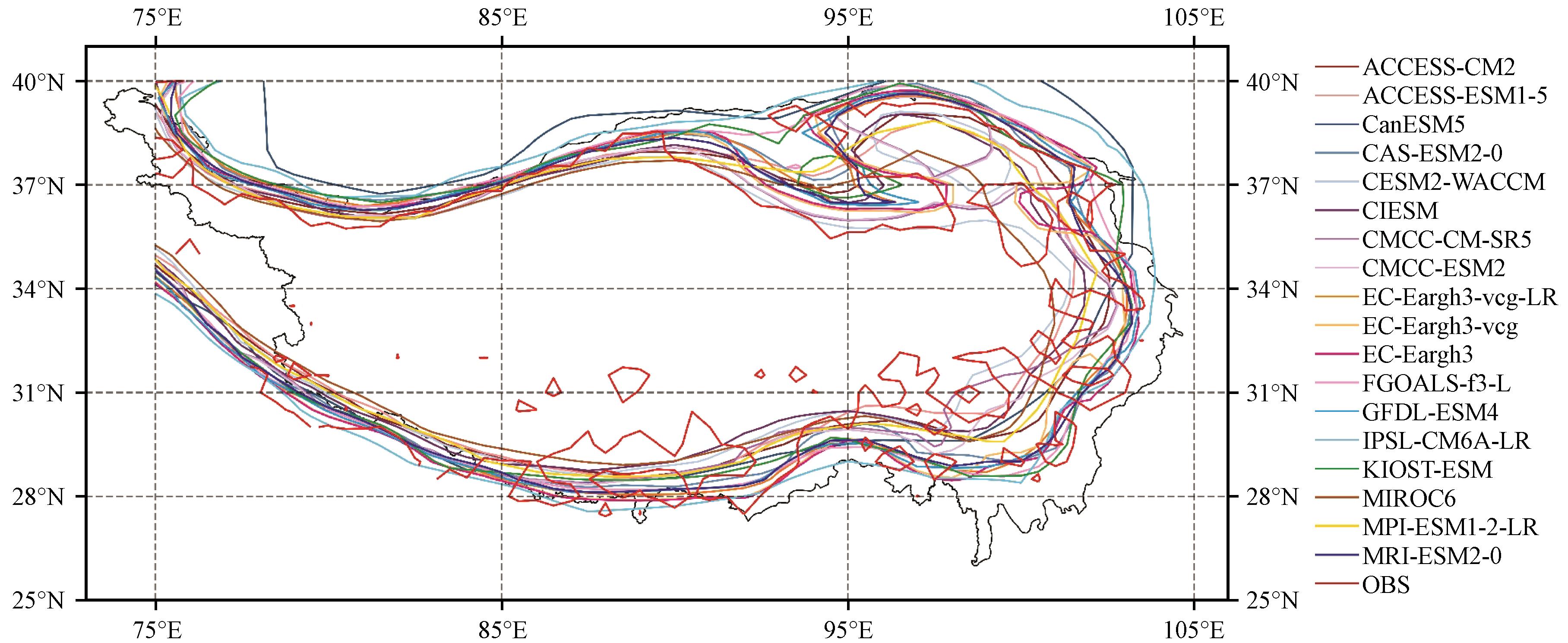 表2 1985 -2014年CMIP6模式模拟的近地面气温与观测值的相关系数和RMSETable 2 Correlation coefficients and RMSEs of the simulated surface-air temperature with the CMIP6 models and observation over the QXP during 1985 -2014 |