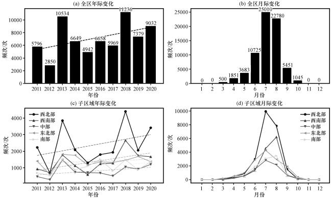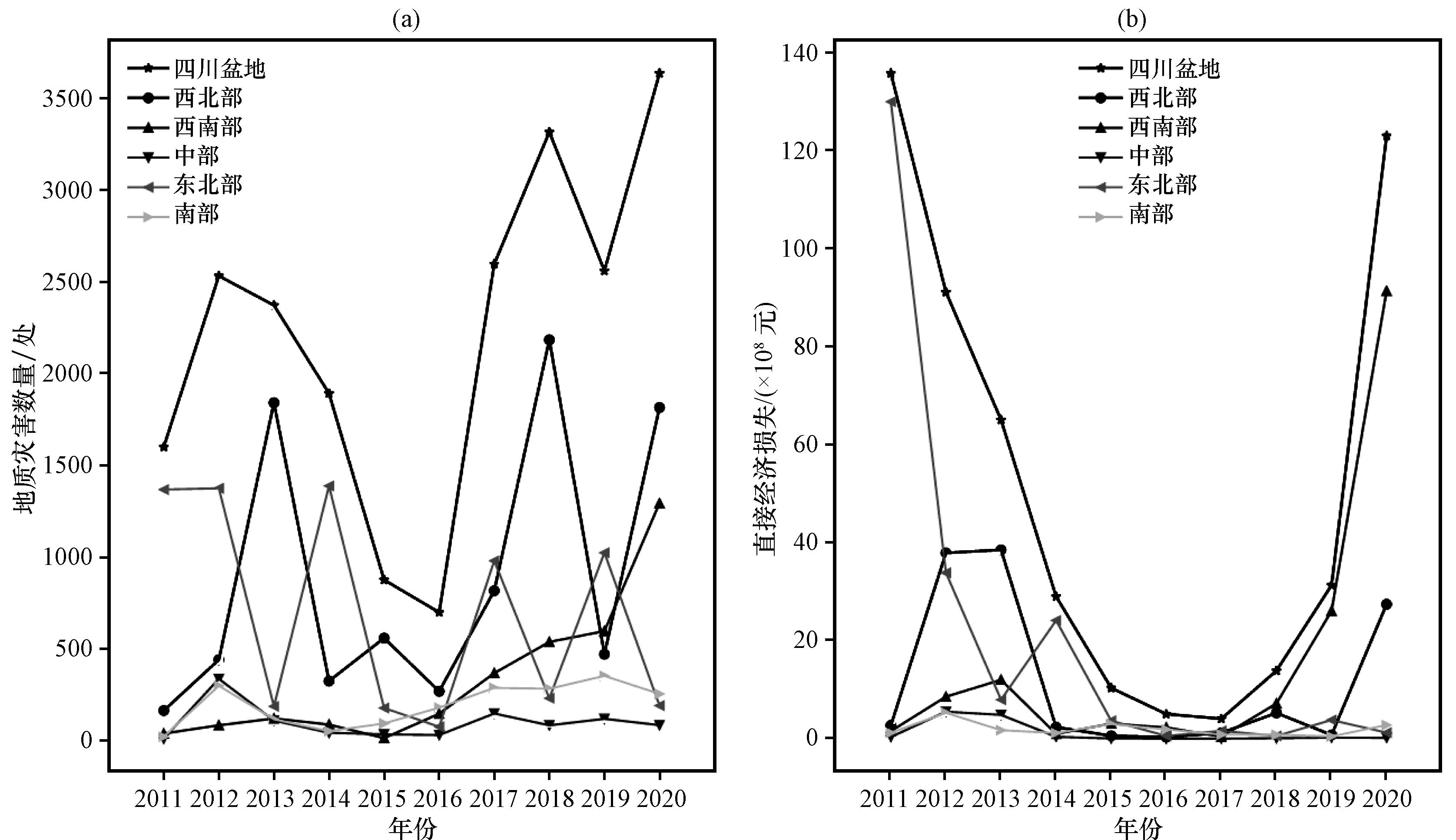 表1 2011 -2020年四川盆地的地质灾害灾情统计Table 1 Statistics of geological disasters in Sichuan basin during 2011-2020 |