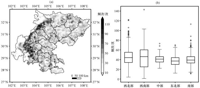 表2 四川盆地地质灾害数量与短时强降水的相关系数Table 2 The correlation coefficient between geologic disasters and short-time heavy rainfall in Sichuan basin |