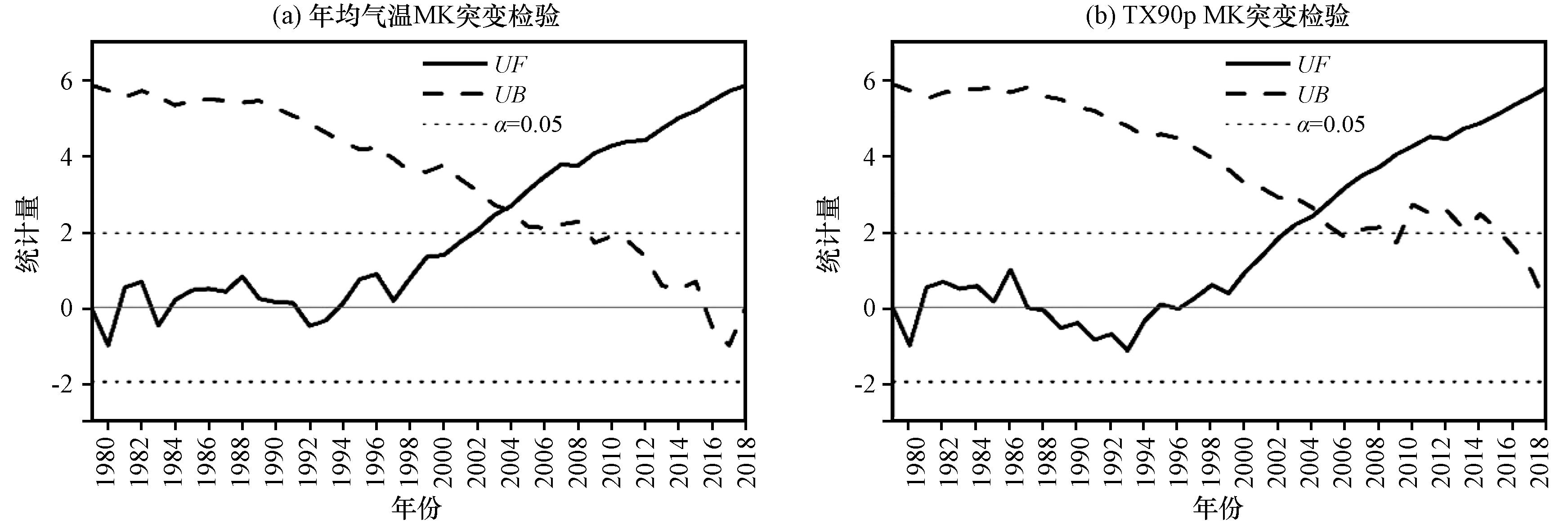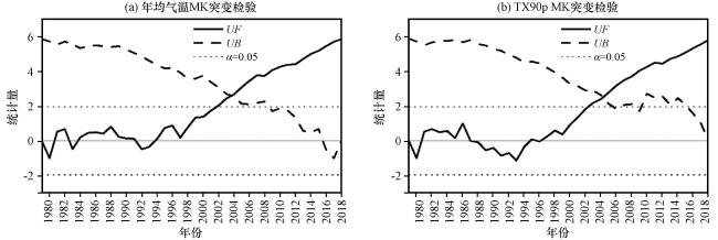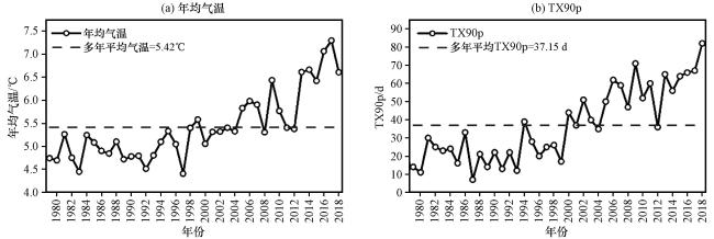 图2 西藏波密卡达沟流域年均气温和TX90p时间序列Fig.2 Time series of annual mean air temperature and TX90p in Kada valley, Bomi County, Tibet |