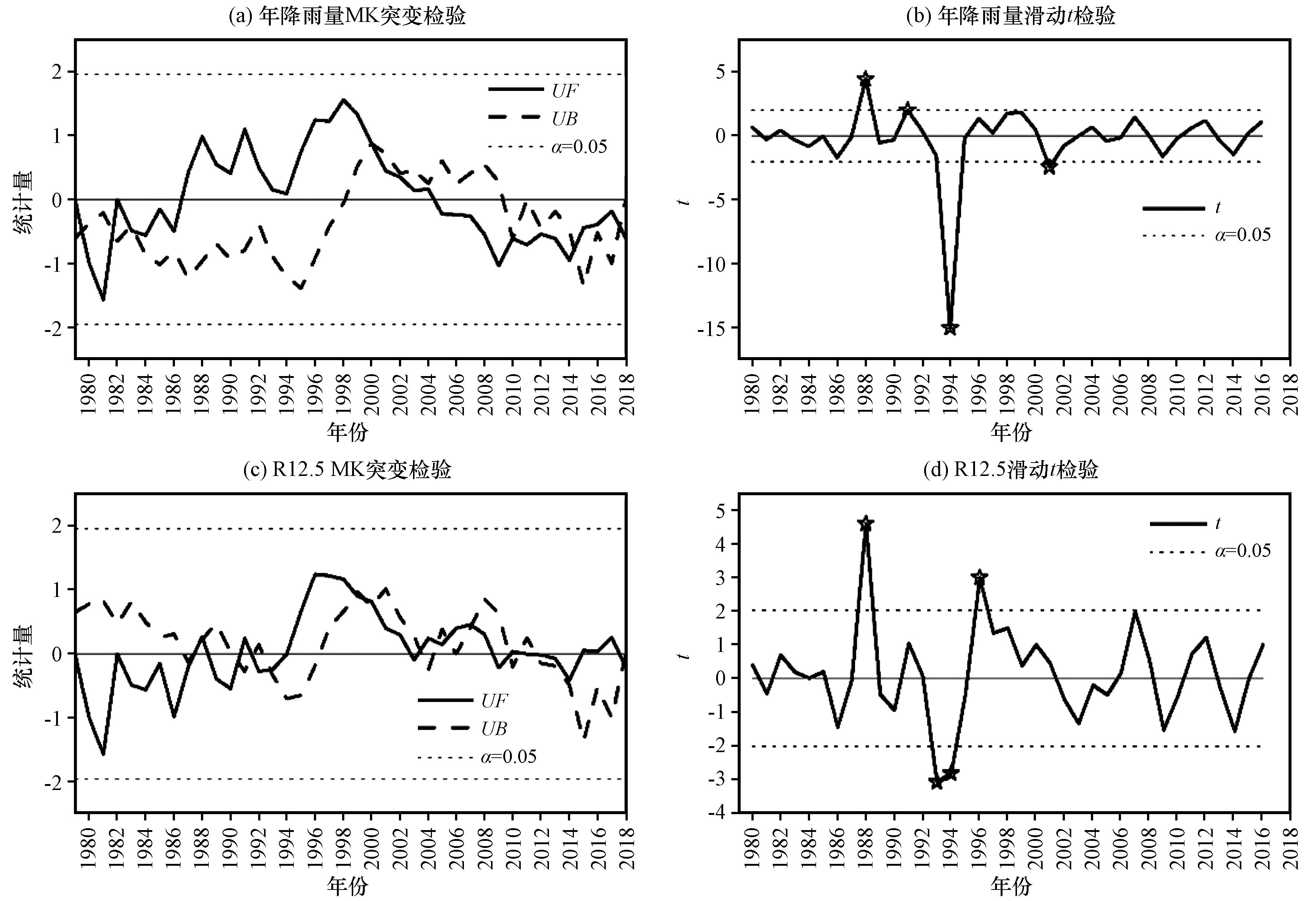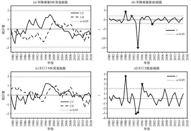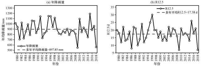 图6 西藏波密卡达沟流域年降雨量和R12.5时间序列Fig.6 Time series of annual rainfall and R12.5 in Kada valley, Bomi County, Tibet |
