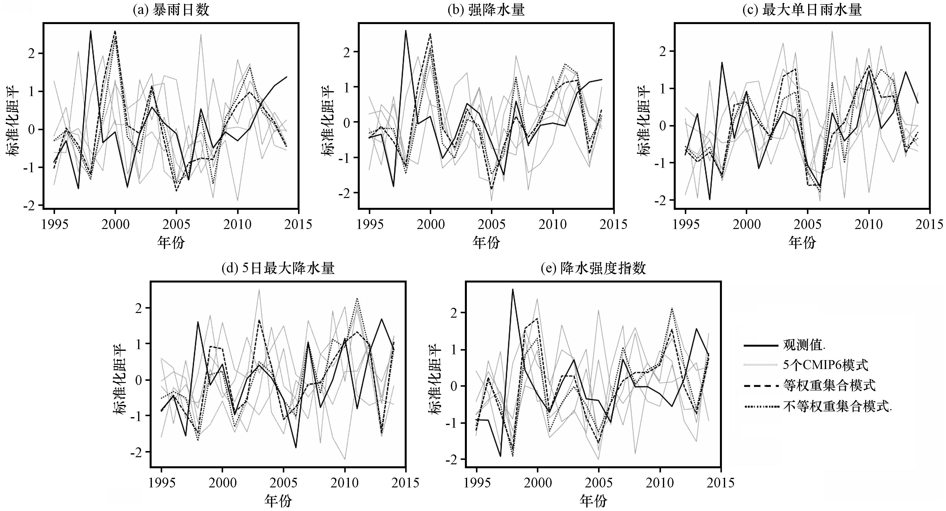 表2 所选5个极端降水指数及定义Table 2 The selected five extreme precipitation indices and their definitions |