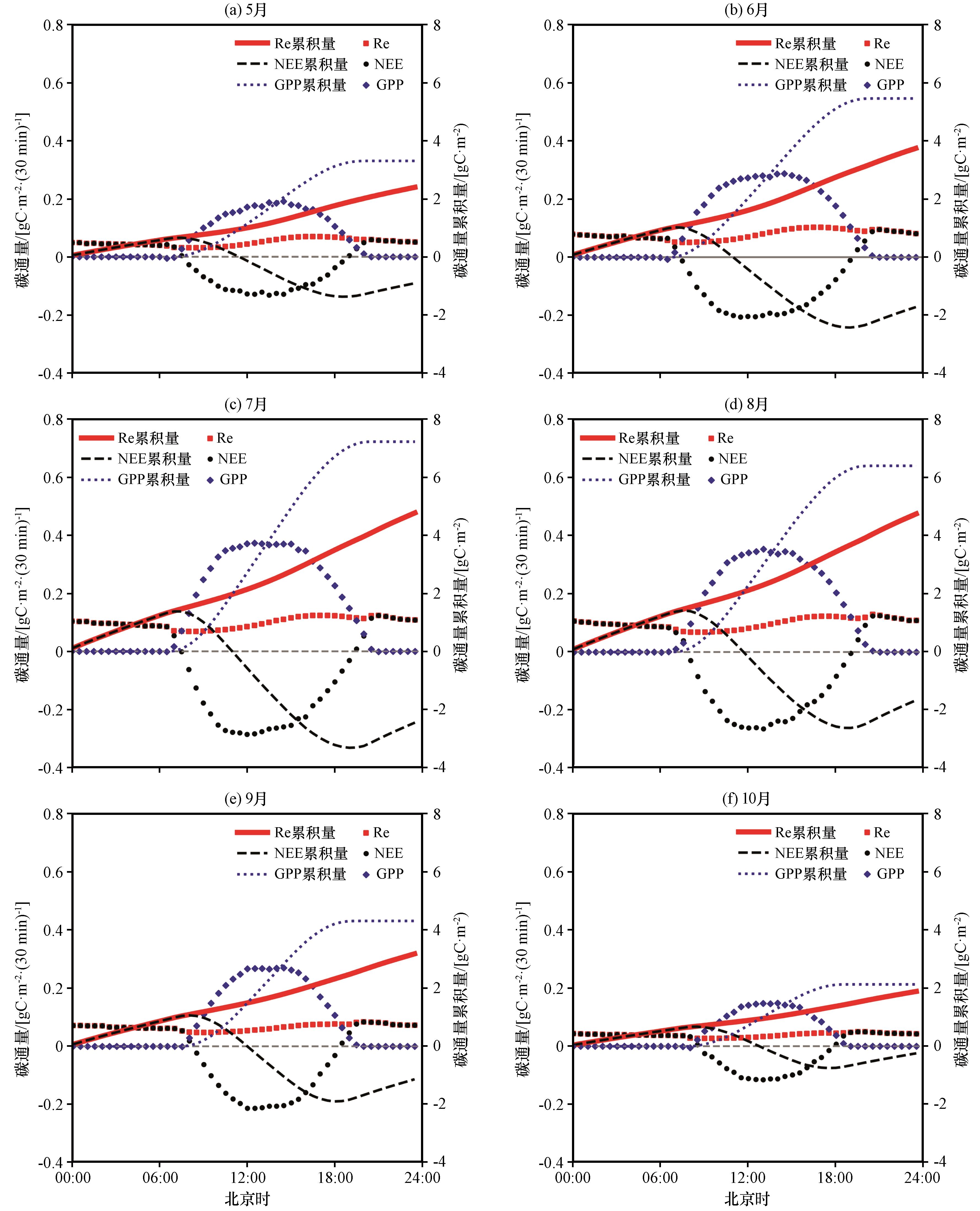 3.3.1 碳通量生长季日变化特征