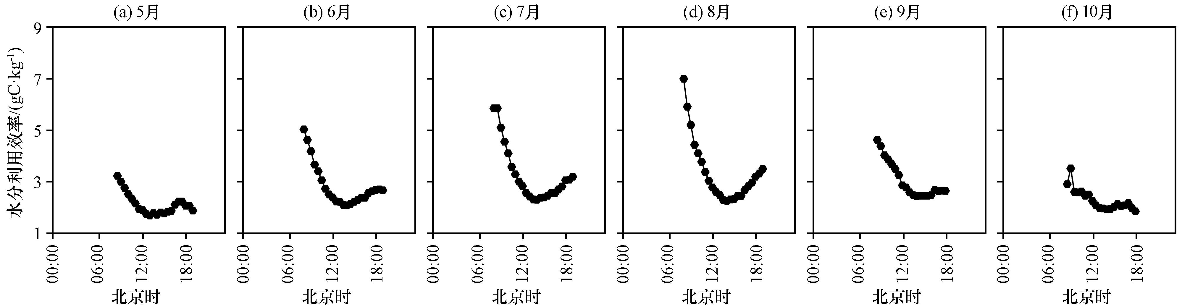 3.3.3 WUE 生长季日变化特征