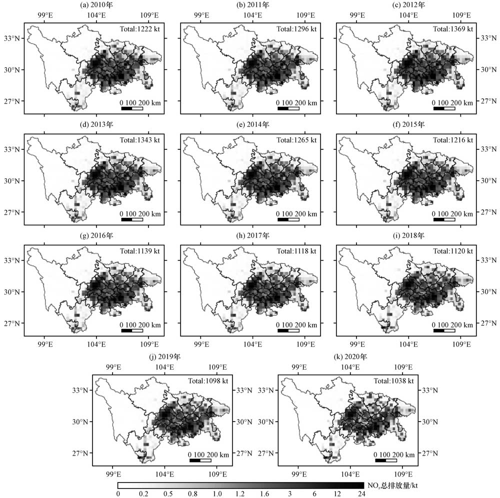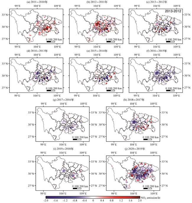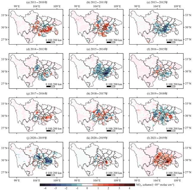 2年均浓度增幅显著, 分别上升33.86%和30.43%。之后, 大多数城市的NO