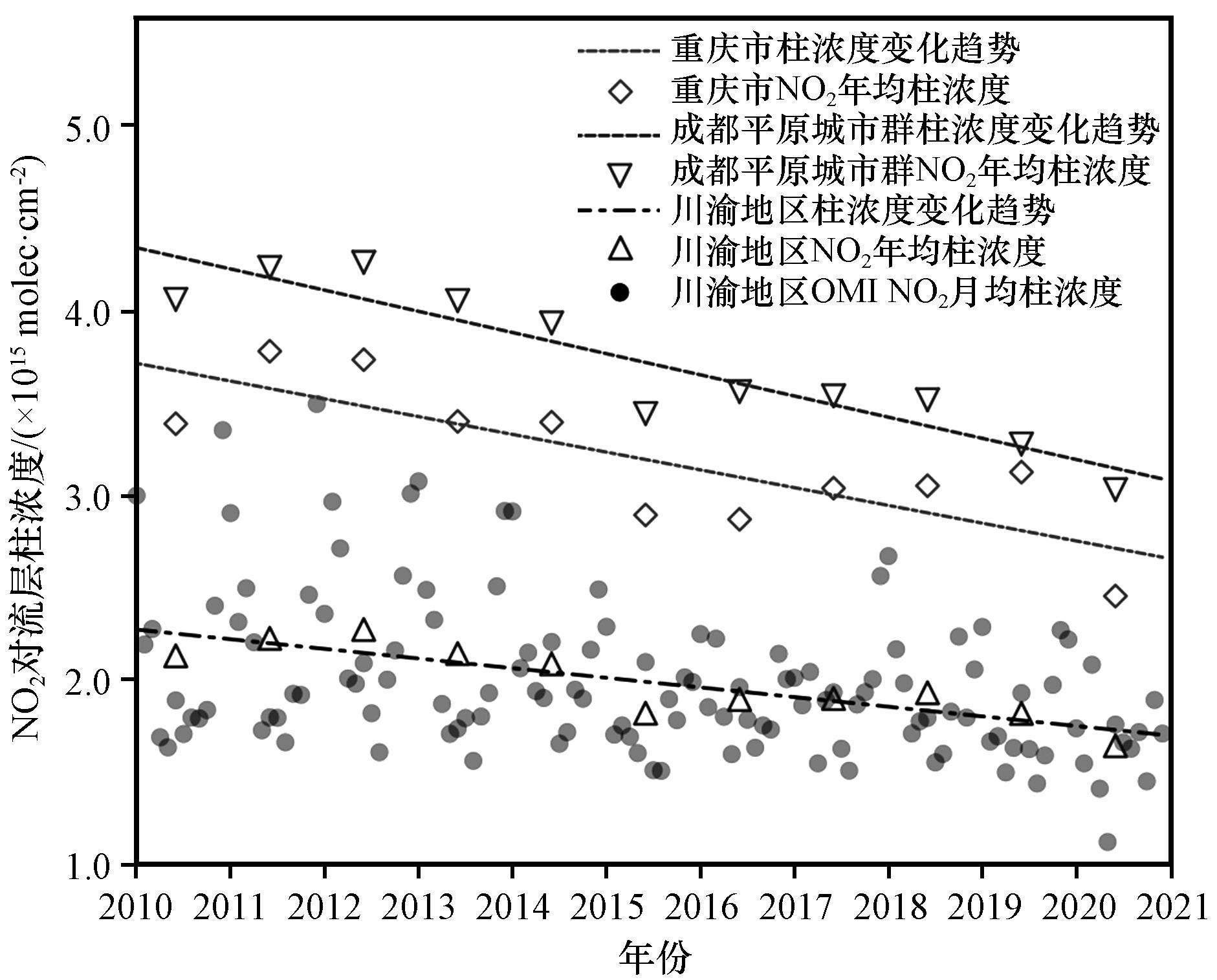2年均浓度呈现下降趋势。到2021年, 成都市的NO
