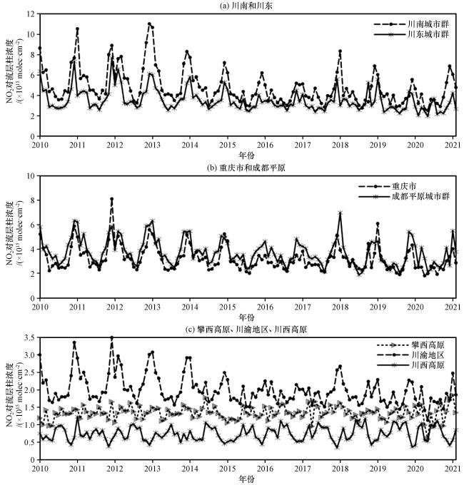 图9为2014 -2021年川渝地区各城市地面环境监测的NO