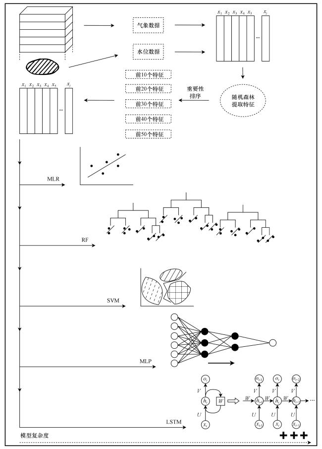 A comprehensive analysis was conducted to examine the processes and impacts of water level variations in Qinghai Lake under changing climatic conditions. The study utilized monthly mean water level data from 1959 to 2017,sourced from the Qinghai Lake Basin,in conjunction with meteorological and climate variables derived from the ERA5 reanalysis dataset developed by the European Centre for Medium-Range Weather Fore‐ casts(ECMWF). Several large-scale atmospheric circulation indices were also incorporated to investigate their influence on lake dynamics. This integrated dataset enabled a systematic assessment of the dominant climatic drivers and facilitated the development of predictive models to simulate future water level changes. To identify the most relevant influencing factors,the Random Forest(RF)algorithm was employed to perform feature selection and importance ranking. This process allowed for an evaluation of the relationship between feature relevance and model performance. Subsequently,a comparative analysis was undertaken using five machine learning models:RF,Support Vector Machine(SVM),Multi-layer Perceptron(MLP),Long Short-Term Memory(LSTM) networks,and Multiple Linear Regression(MLR). The models were trained and validated to simulate monthly water level fluctuations and to assess the influence of model complexity and temporal learning ability on predictive accuracy. The analysis revealed that key drivers of Qinghai Lake water levels include the North Atlantic Oscillation(NAO),Atlantic Multidecadal Oscillation(AMO),Niño 3. 4 index,relative humidity at 400 hPa,450 hPa,and 100 hPa(RH400,RH450,RH100),precipitation,temperature at 1000 hPa(T1000),vertical wind velocity at 1000 hPa(W1000),and longwave radiation(LW). Among the models tested,the LSTM network exhibited superior performance due to its ability to capture complex nonlinear and sequential dependencies in the data. When the ten most significant features were selected,the LSTM model achieved a Pearson correlation coefficient(R)of 0. 95,Nash-Sutcliffe Efficiency(NSE)of 0. 96,Normalized Root Mean Square Error(NRMSE) of 0. 14,and Kling-Gupta Efficiency(KGE)of 0. 87. The MLP model demonstrated the second-best performance,while RF and SVM yielded comparable but slightly lower results. MLR performed the worst,reflecting its limitations in modeling nonlinear and temporal relationships. Projections based on the LSTM model indicate that the water level of Qinghai Lake is likely to rise by approximately 2. 55 m between 2017 and 2030. This anticipated increase reflects the continuing influence of climate change and underscores the importance of adaptive water resource management strategies in plateau lake regions. The findings offer a reliable methodological frame‐ work for modeling and forecasting hydrological changes in alpine lake systems under future climate scenarios.