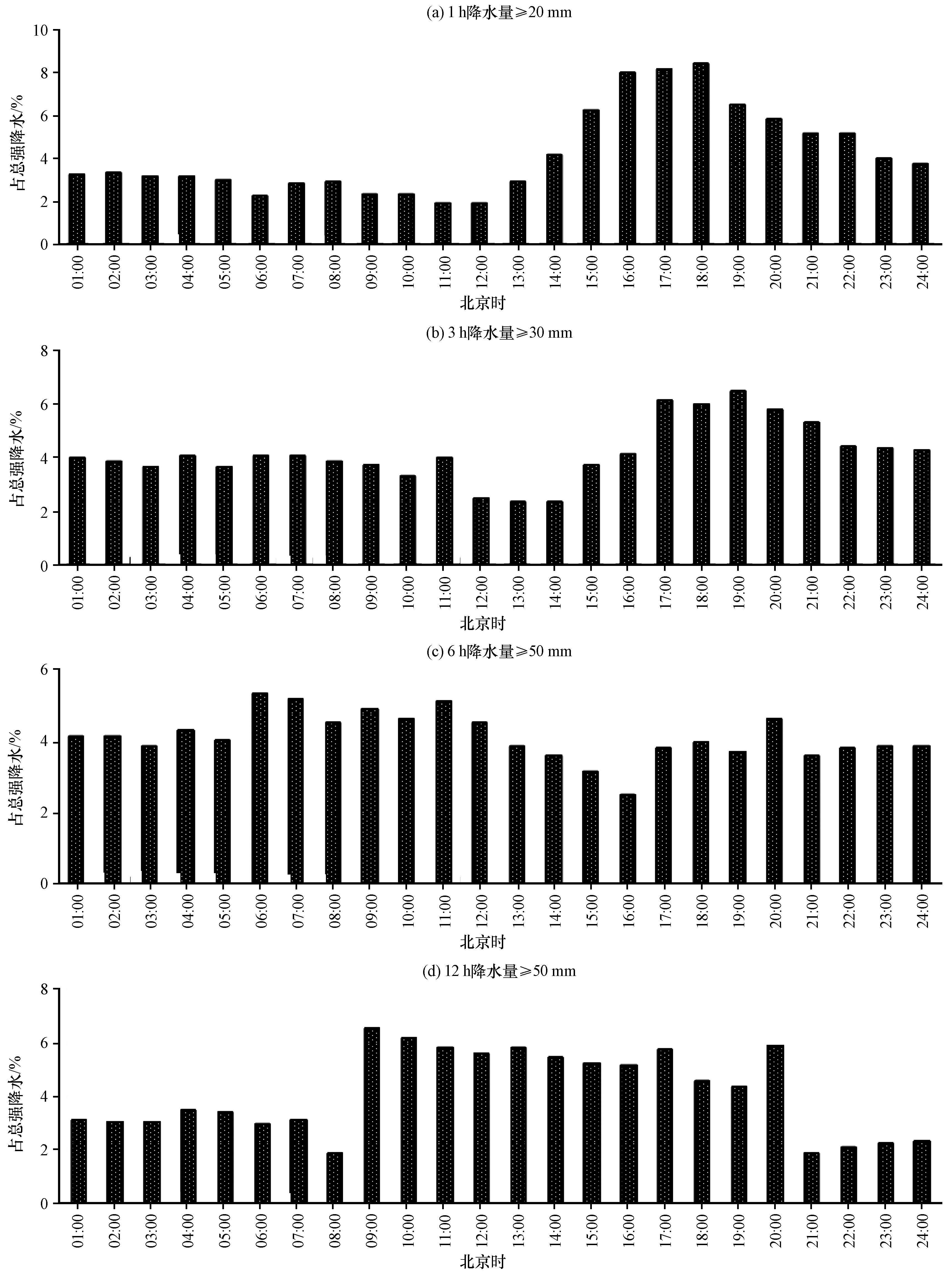 | 图4 山西省不同的短历时强降水频次日变化 |