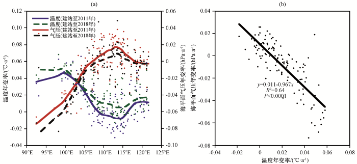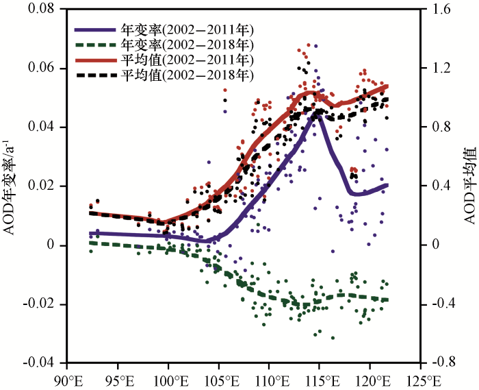 Based on the fact that the turning point of aerosol variation has occurred since 2012, two time series of climatological data were set by the period last to 2011 and that to 2018 from the available.The used data is daily of 14:00 (Beijing Time) in summer season last more than 40 years from selected unmigrated 133 meteorological stations.The annual variability of wind speed, temperature and sea-level pressure in the mid-latitude of China were analyzed and compared between two time series.Also the spatial distribution and annual variability of AOD were analyzed and were correlated with that of wind speed, temperature and pressure with the data of MODIS aerosol optical thickness (AOD) product from 2002 to 2018.The results show that: (1) AOD was small over the Qinghai-Xizang plateau (QXP), and was large over the Qing-ba mountainous area and inland plain with increasing trend from 2002 to 2011 and turning decrease from 2002 to 2018, which suggests the effectiveness of air-pollution control after 2012.(2) Before 2012, the temperature increased in QXP and the western Qing-ba mountainous area, and declined in the eastern Qing-ba mountainous area and the inland plain and with maximum decreasing around 114°E.Compared with that of time series to 2018, the extent of temperature decrease and pressure increases lightly declined during AOD decreasing, which reflects the respondence of temperature and pressure to AOD.(3) The wind speed in summer was generally decreasing, especially in the inland plain with the largest annual reduction rate of -0.06~-0.02 m·s-1.Also the annual variability of wind speed was reverse to that of AOD distribution.It was shown that the decreasing extent of wind speed was modulated by declination of average AOD by the comparison of two time series, which suggests the sensitivity of wind speed to aerosol variation.