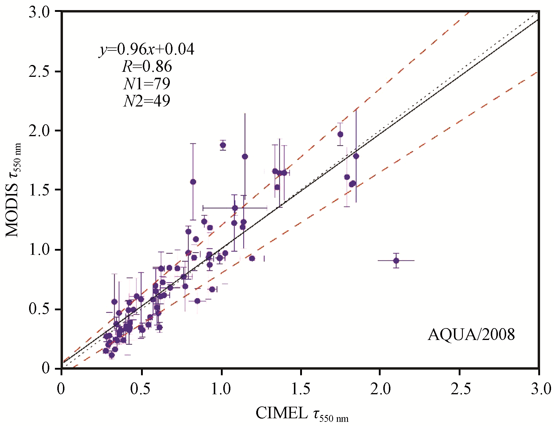 | 图1 Aqua MODIS与CE318 AOD散点分布(引自董自鹏等, 2013) |